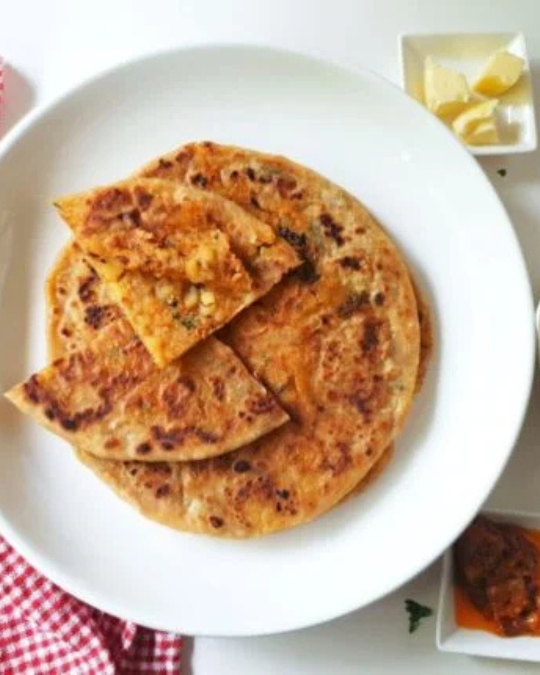 Homemade whole wheat parathas filled with a delicious and spicy chicken filling.